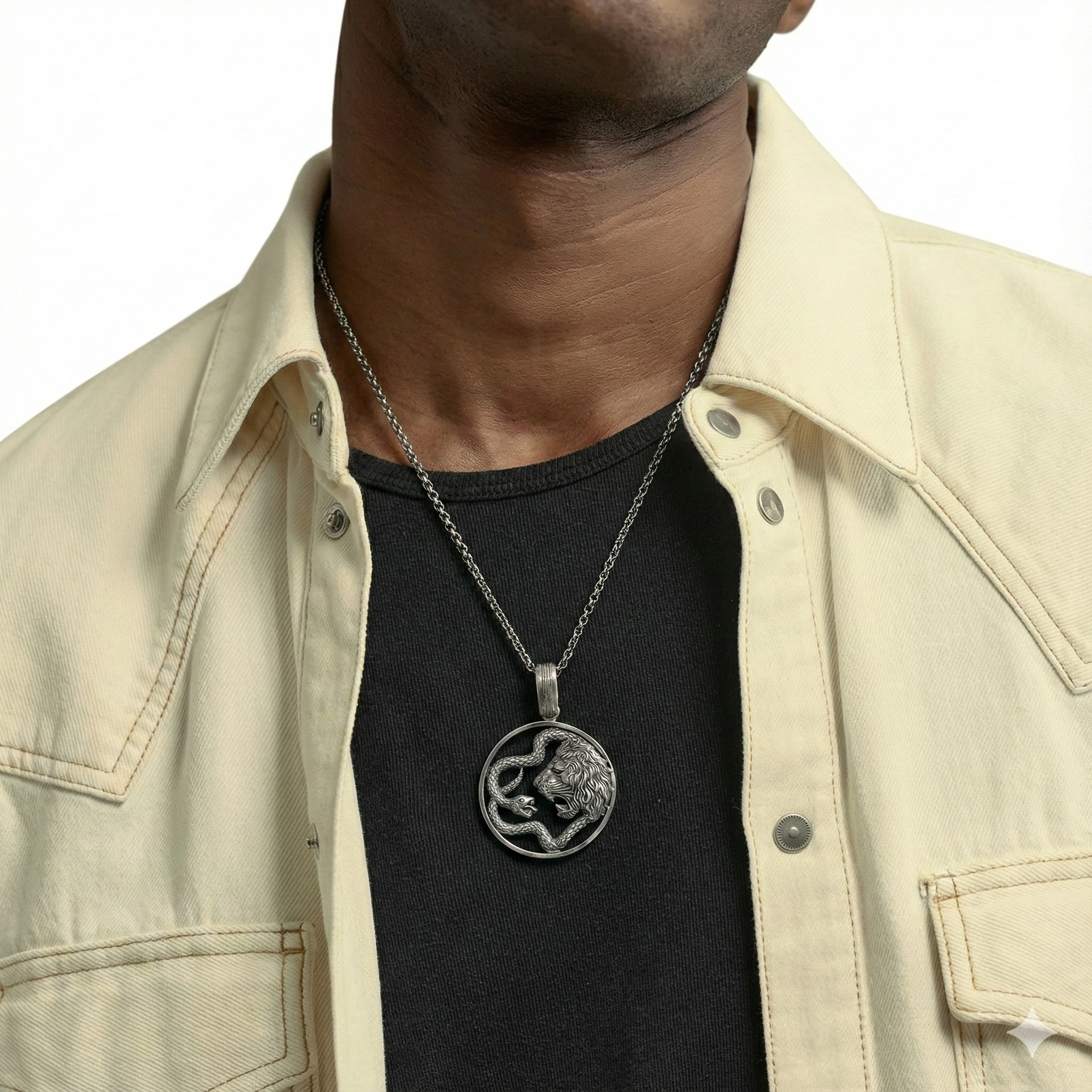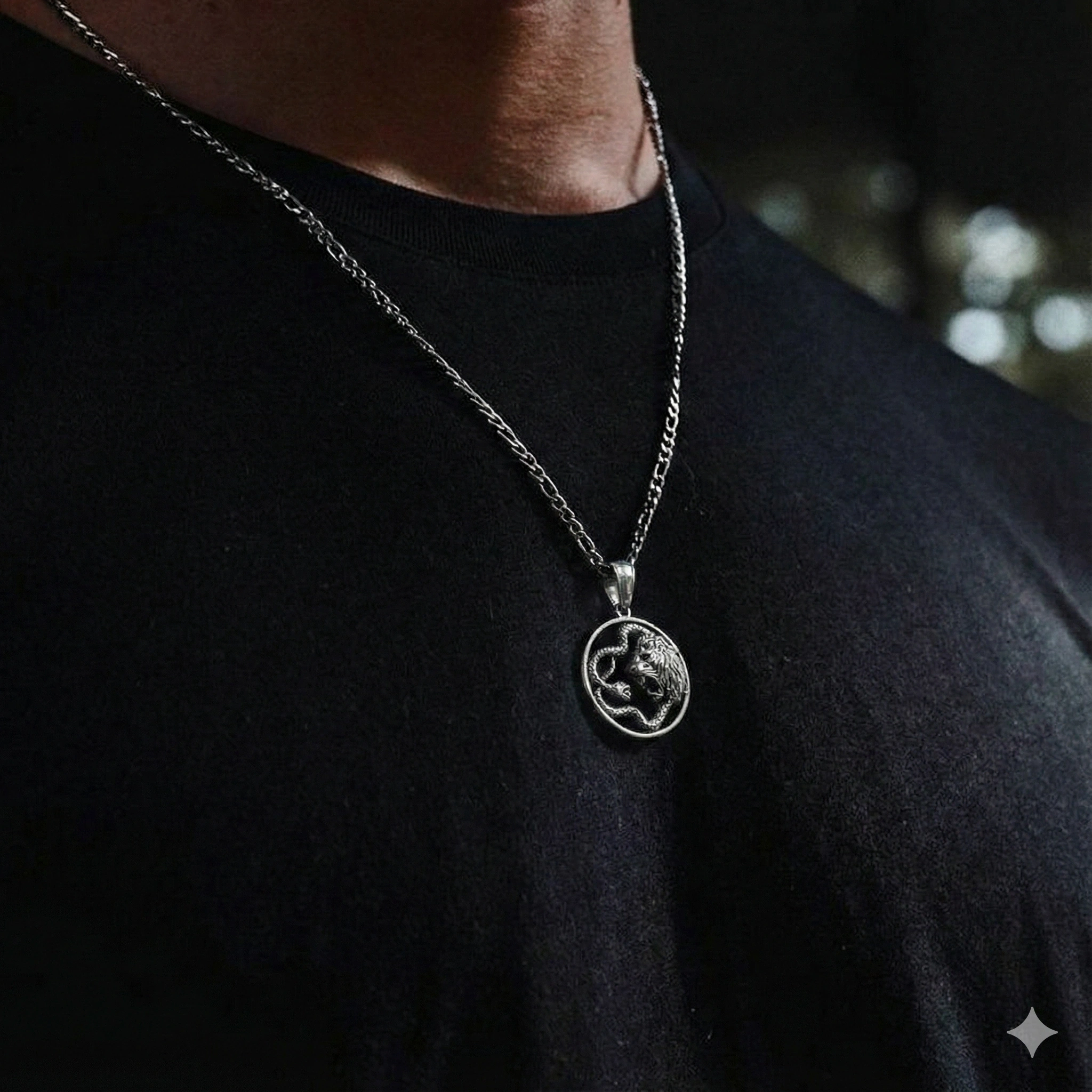 Çift Başlı Yılan Tılsım Özel Kaplama Yüzeyli Gümüş Kolye