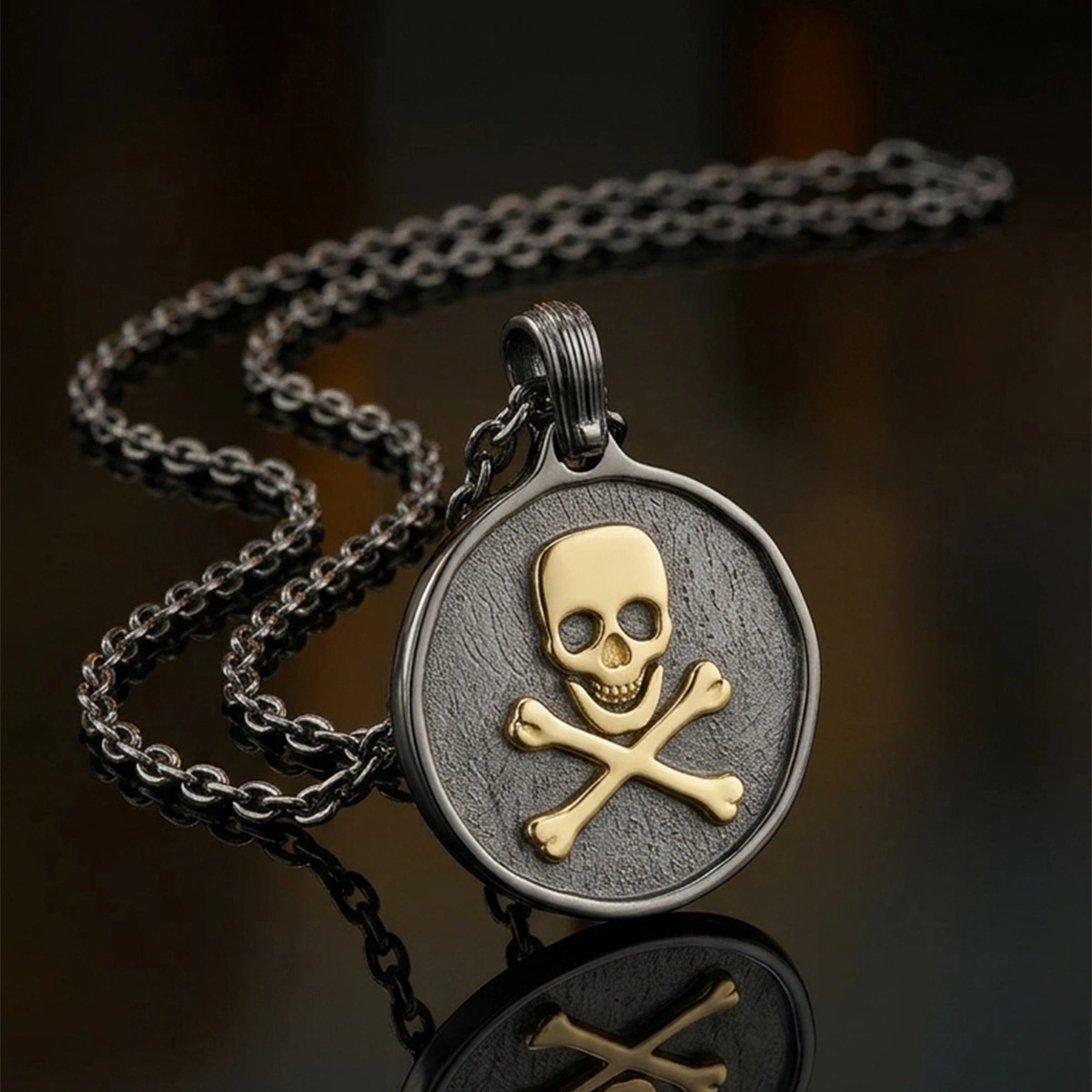 Çift Renkli Kurukafa Madalyon 925 Ayar Gümüş Kolye