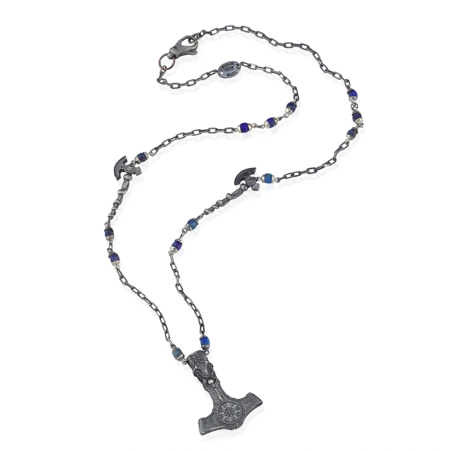 Dark Totem Lapis Taşlı Viking Baltası Gümüş Kolye
