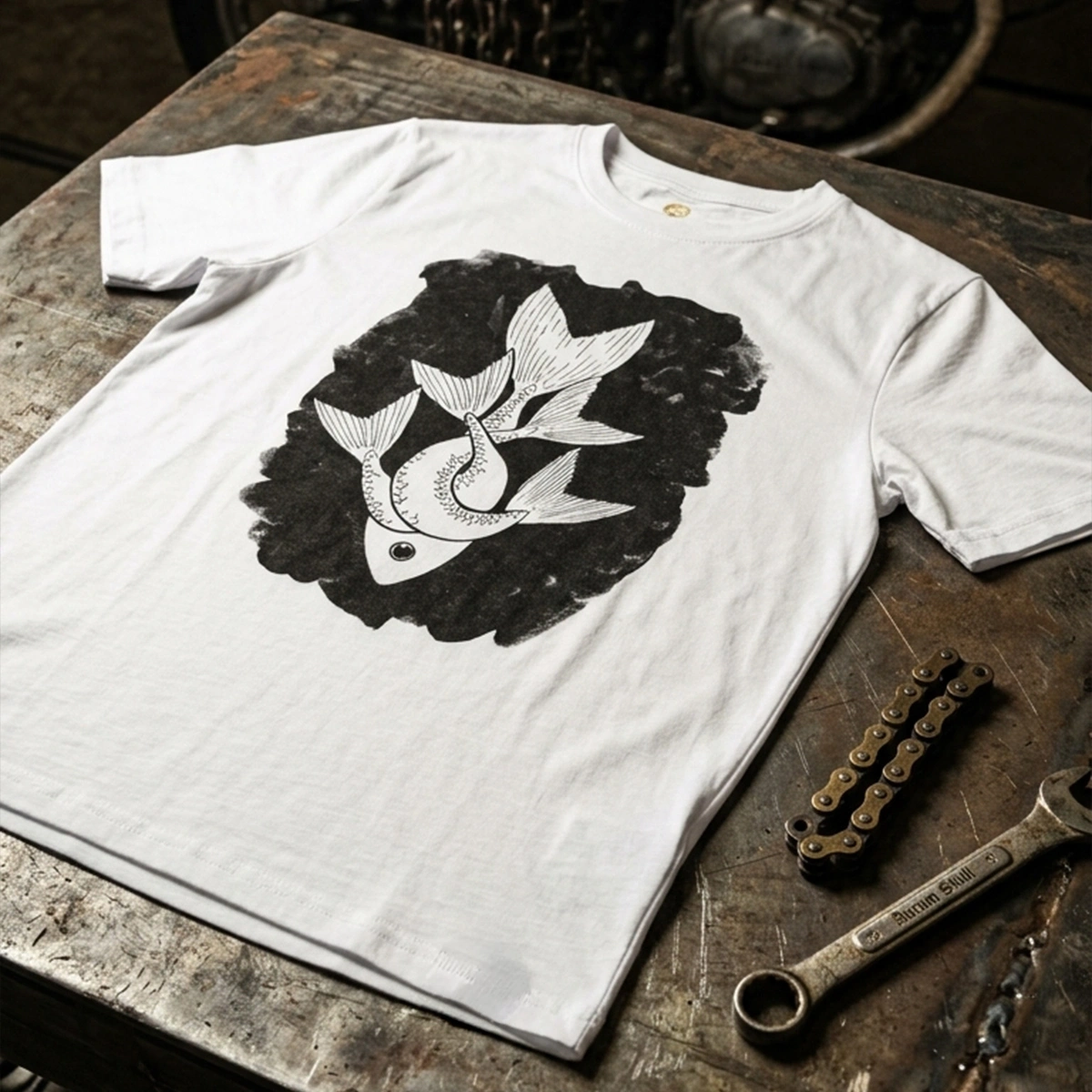 Custom Design Infinite Abundance Fish Printed Crew Neck White T-Shirt