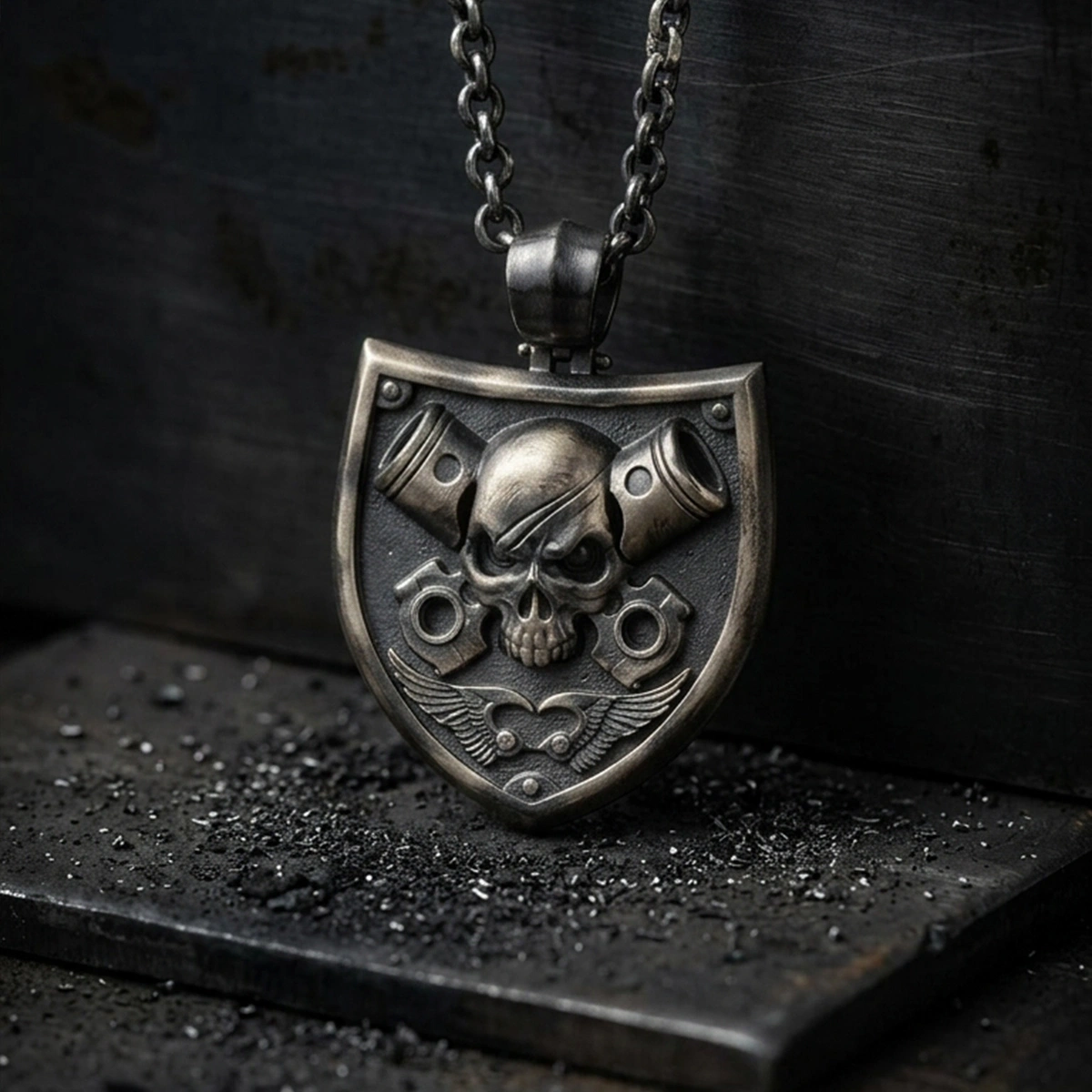 Oxidized Skull Epaulette Silver Necklace