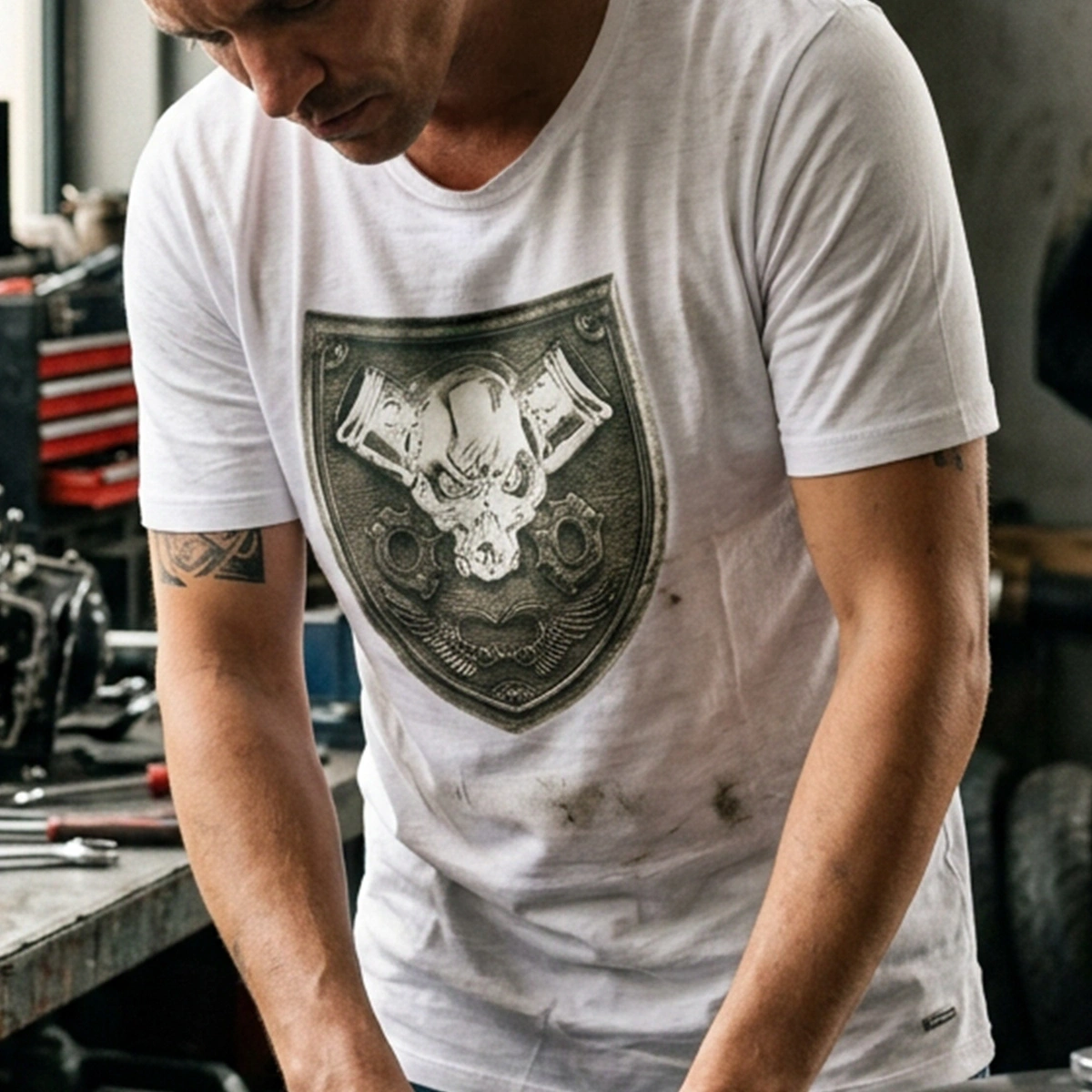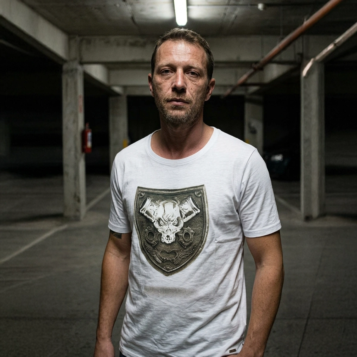 Pirate Epaulette Crew Neck Men's White T-Shirt