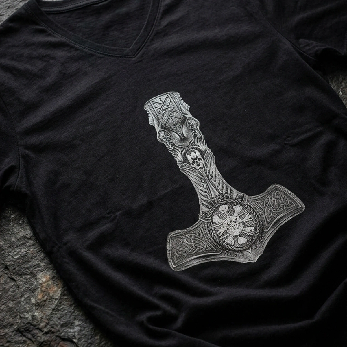 Warrior Axe Printed V Neck Men's Black T-Shirt
