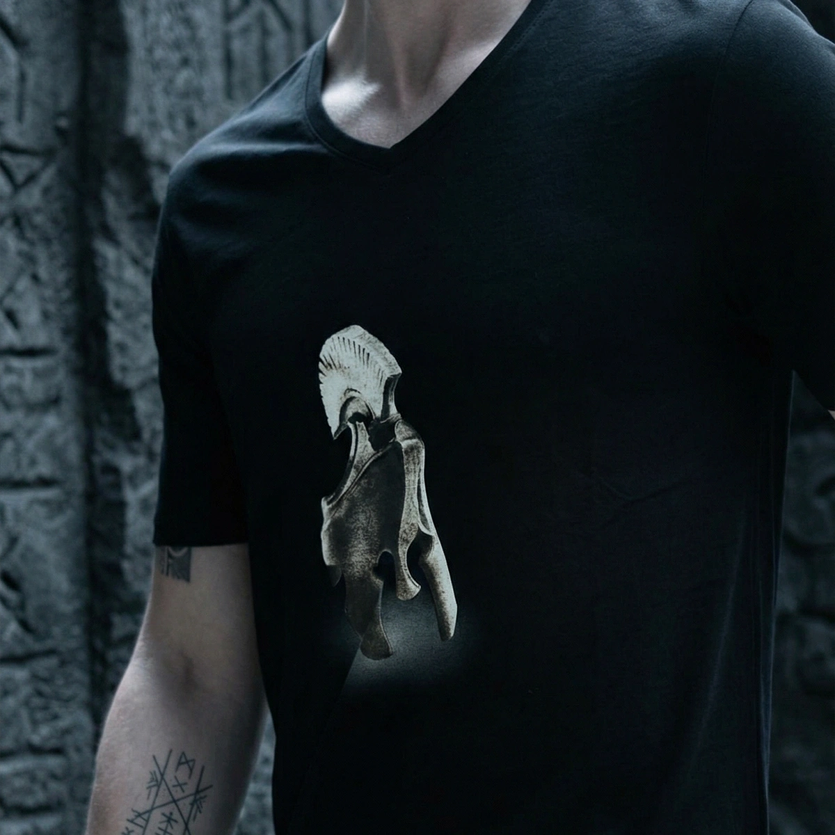 <strong>Special Design Warrior Helmet Printed V Neck Men's Black T-Shirt</strong><p>You Will Like Aurum Skull Stories Jewelry's &nbsp;T-Shirts,</p><p>&nbsp;</p><strong><p>100% Organic Cotton &nbsp;&nbsp;</p><p>Wash inside out in the washing machine at 30 degrees, Iron inside out to avoid damaging the print surface, Do not use bleach,</p><p>Model/Mannequin Body Measurements: &nbsp; Size S - &nbsp; Height: 175cm &nbsp; - &nbsp;&nbsp;Weight:75 Kg</p></strong>