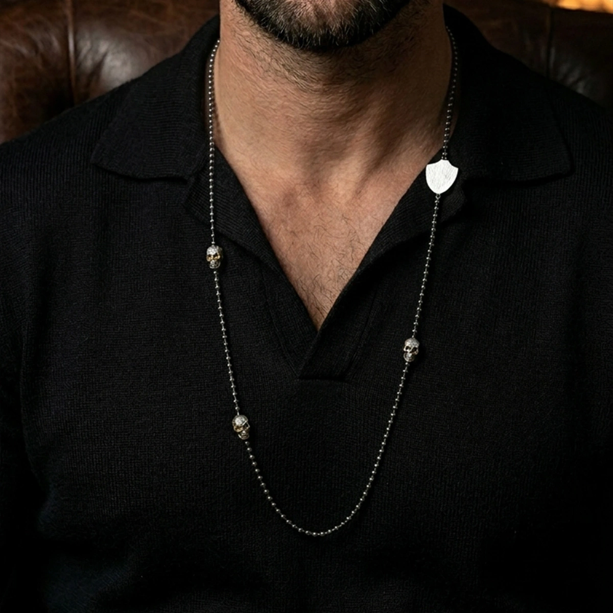 Aurum Skull koleksiyonu, sınırları aşan bir tasarım anlayışı ile unisex takı, aksesuar ve özgün giyim parçalarını sizlere sunuyor. Her parçamız, kendine özgü bir hikaye taşıyarak, giyim ve aksesuarda anlamın ve stilin buluştuğu noktayı temsil ediyor.