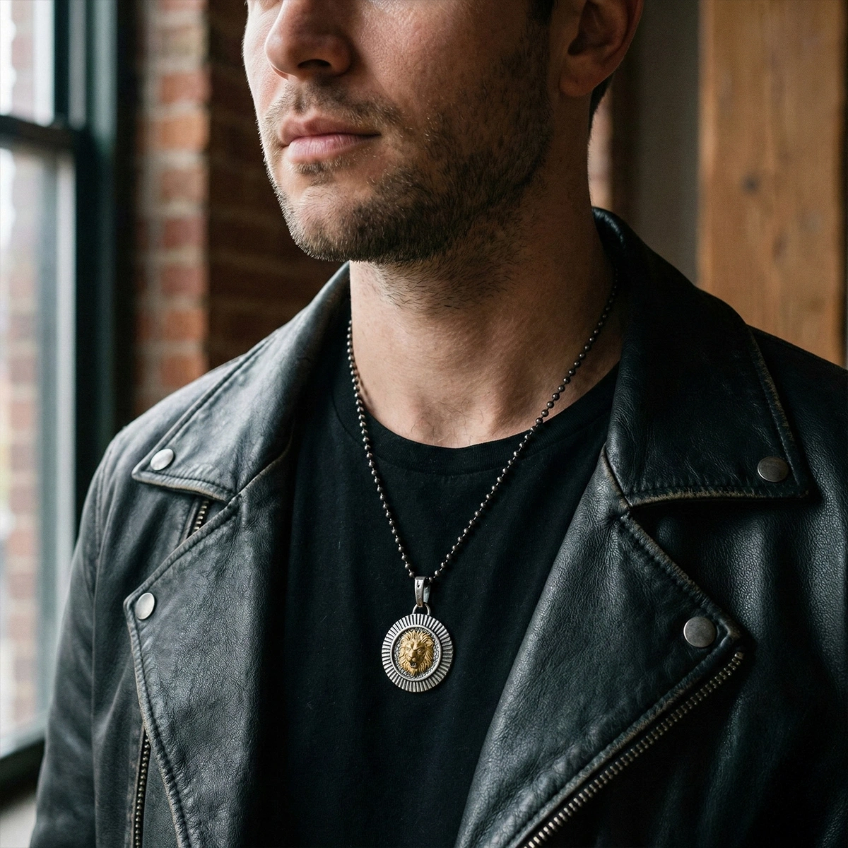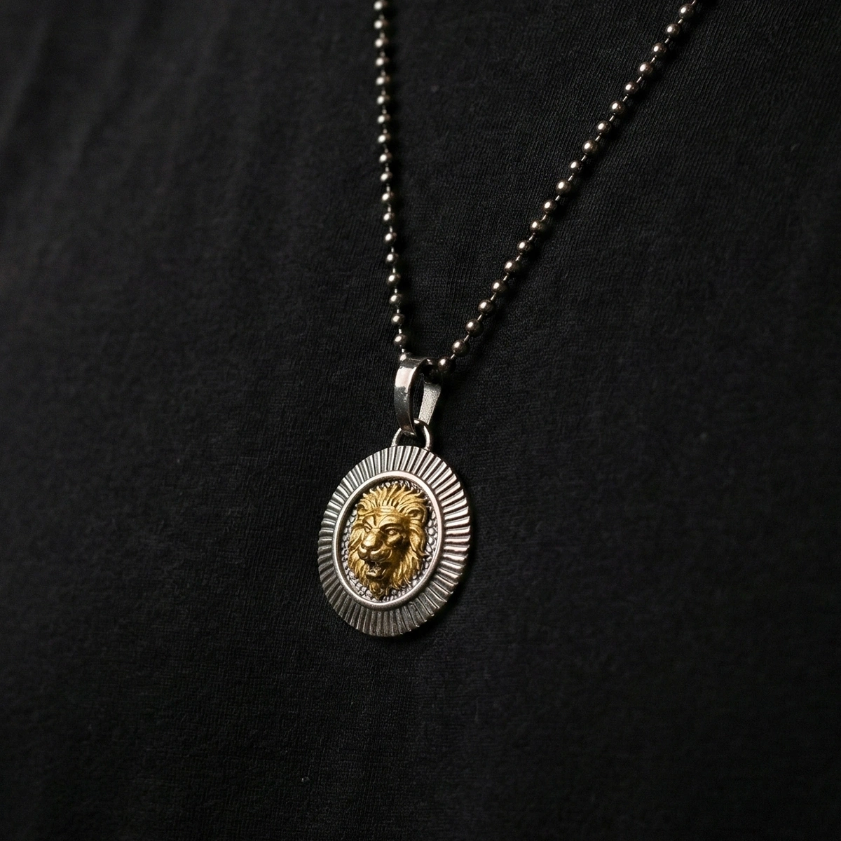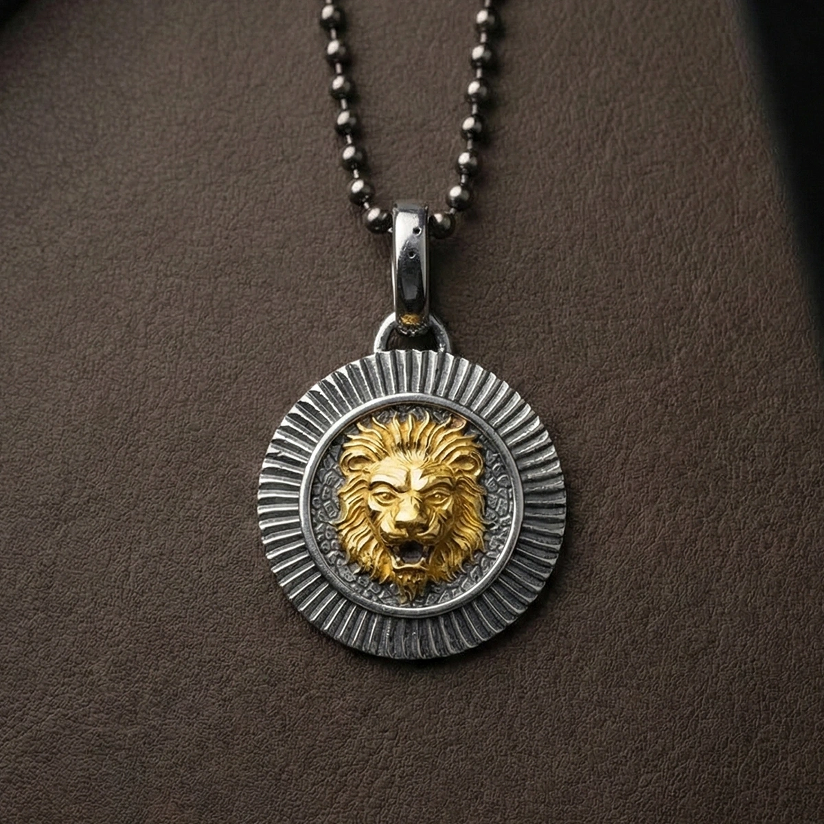 ÖZEL YÜZEY KAPLAMALI KENARLARI TAŞLI ASLAN MADALYON KOLYE Özel Tasarım (925 Ayar Gümüş Özel Renkli Kaplama) 925 Ayar Gümüş Kolye-