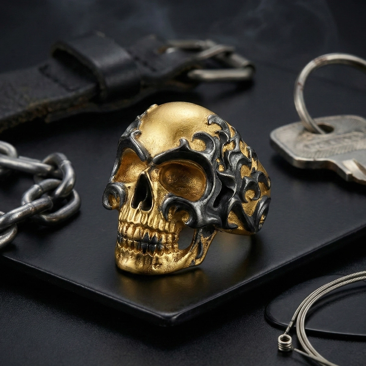 Aurum Skull koleksiyonu, sınırları aşan bir tasarım anlayışı ile unisex takı, aksesuar ve özgün giyim parçalarını sizlere sunuyor. Her parçamız, kendine özgü bir hikaye taşıyarak, giyim ve aksesuarda anlamın ve stilin buluştuğu noktayı temsil ediyor.