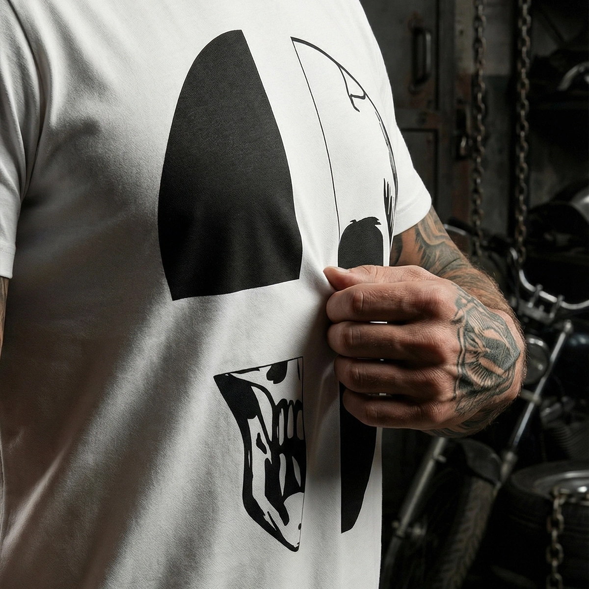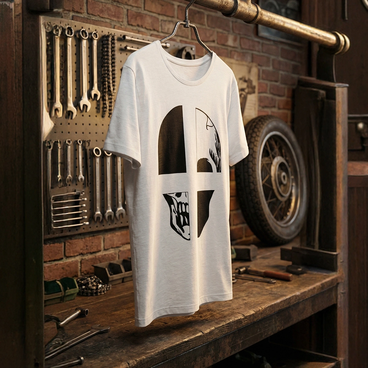 Kurukafa Baskılı Bisiklet Yaka T-Shirt