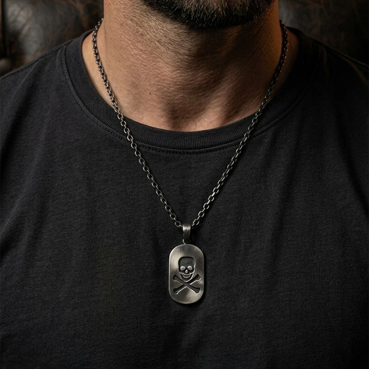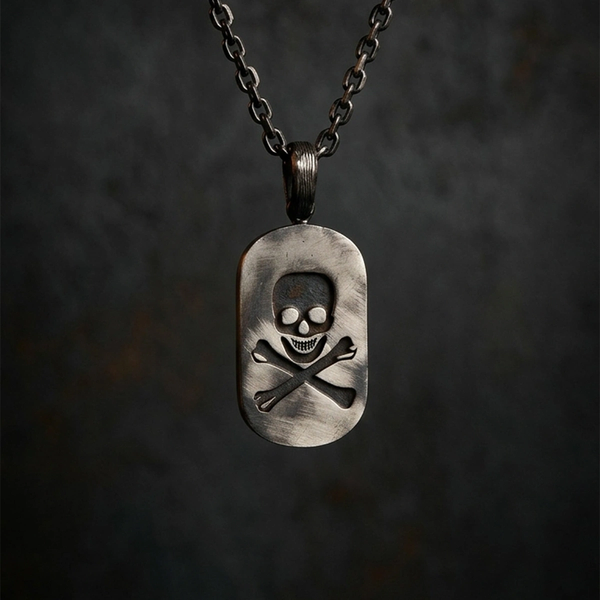 Özel Tasarım (925 Ayar Gümüş Özel Renkli Kaplama) Kurukafa Künye 925 Ayar Gümüş Kolye