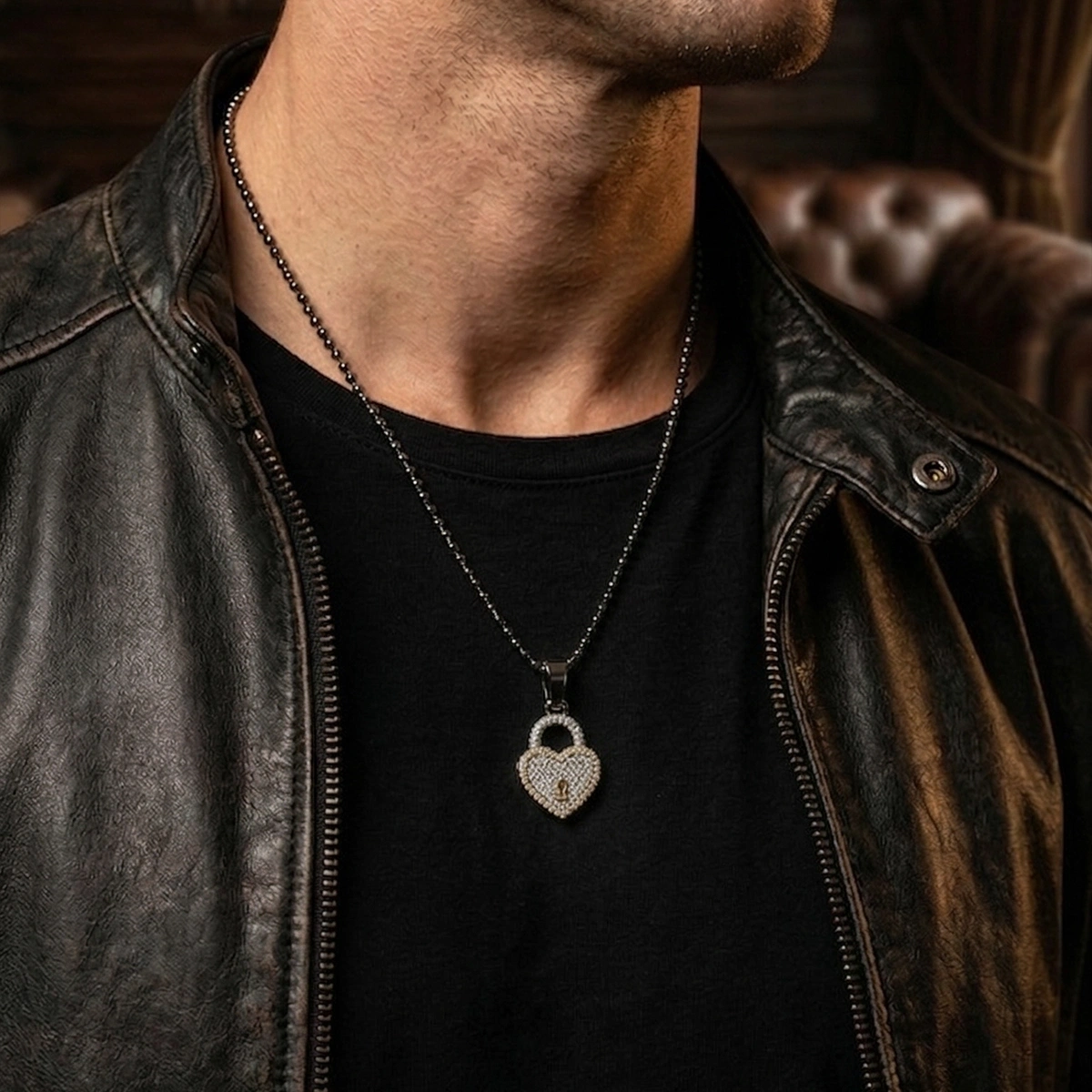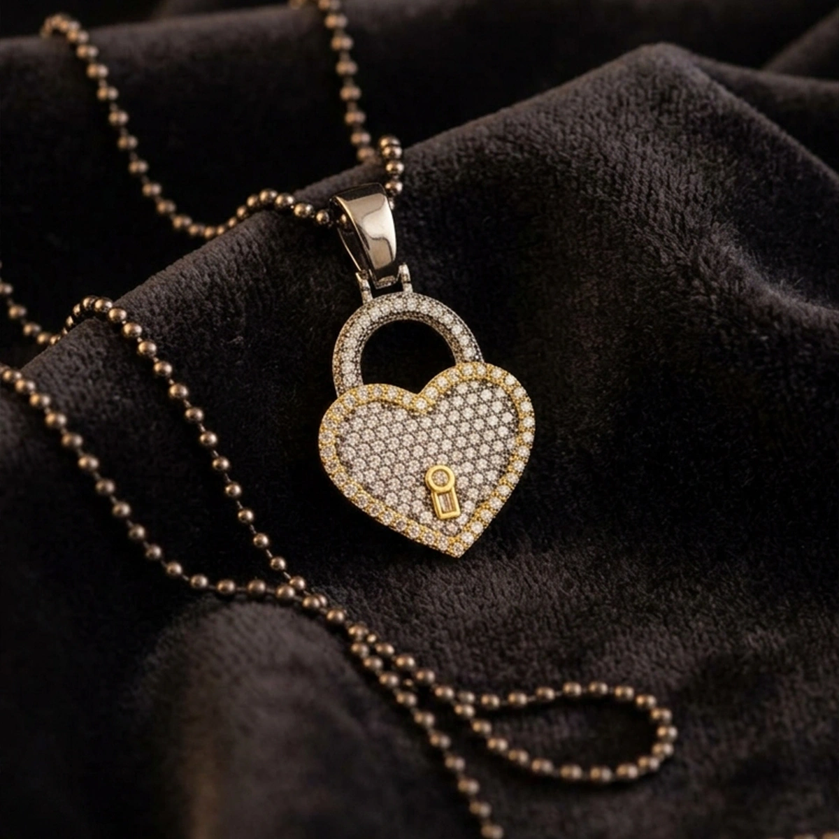 MARKAZİT TAŞLI İKİ RENK ÖZEL YÜZEY KAPLAMA KALP KİLİT KOLYE