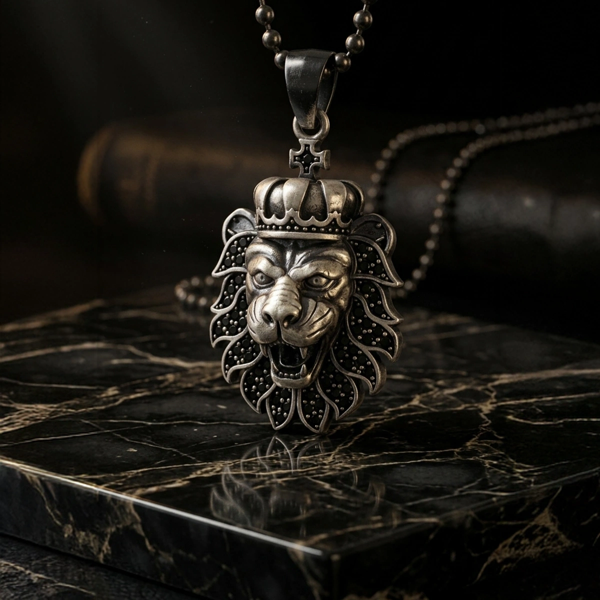 MARKAZİT TAŞLI ÖZEL YÜZE KAPLAMA ASLAN KRAL KOLYE