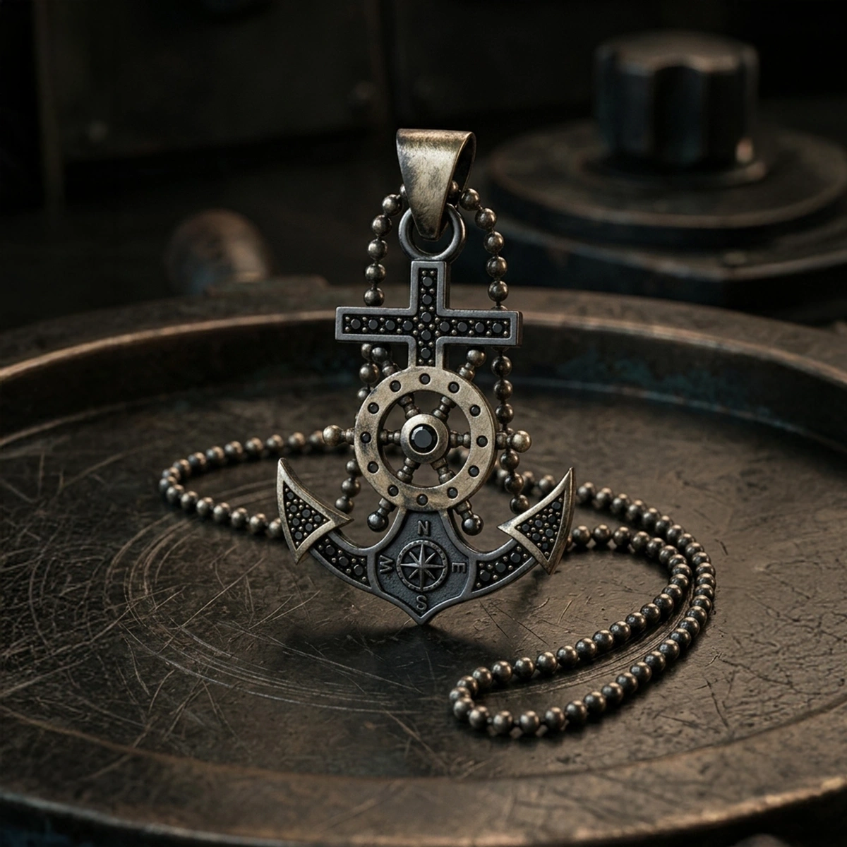 MARKAZİT TAŞLI ÖZEL YÜZEY KAPLAMA HALATLI DÜMENLİ DENİZÇİ ÇAPA KOLYE