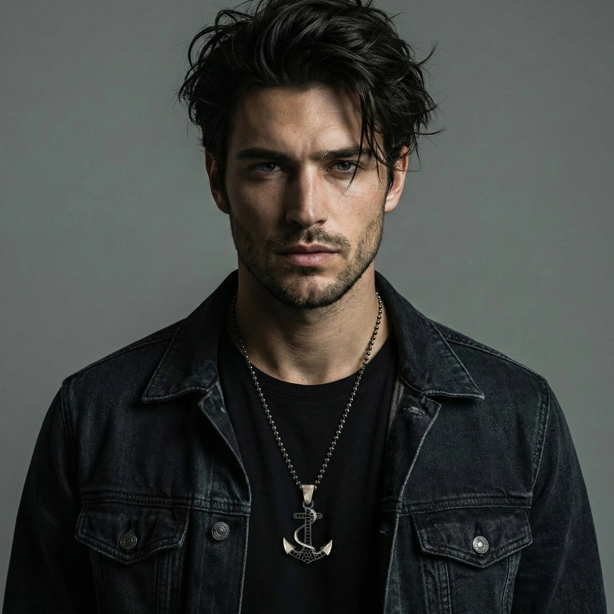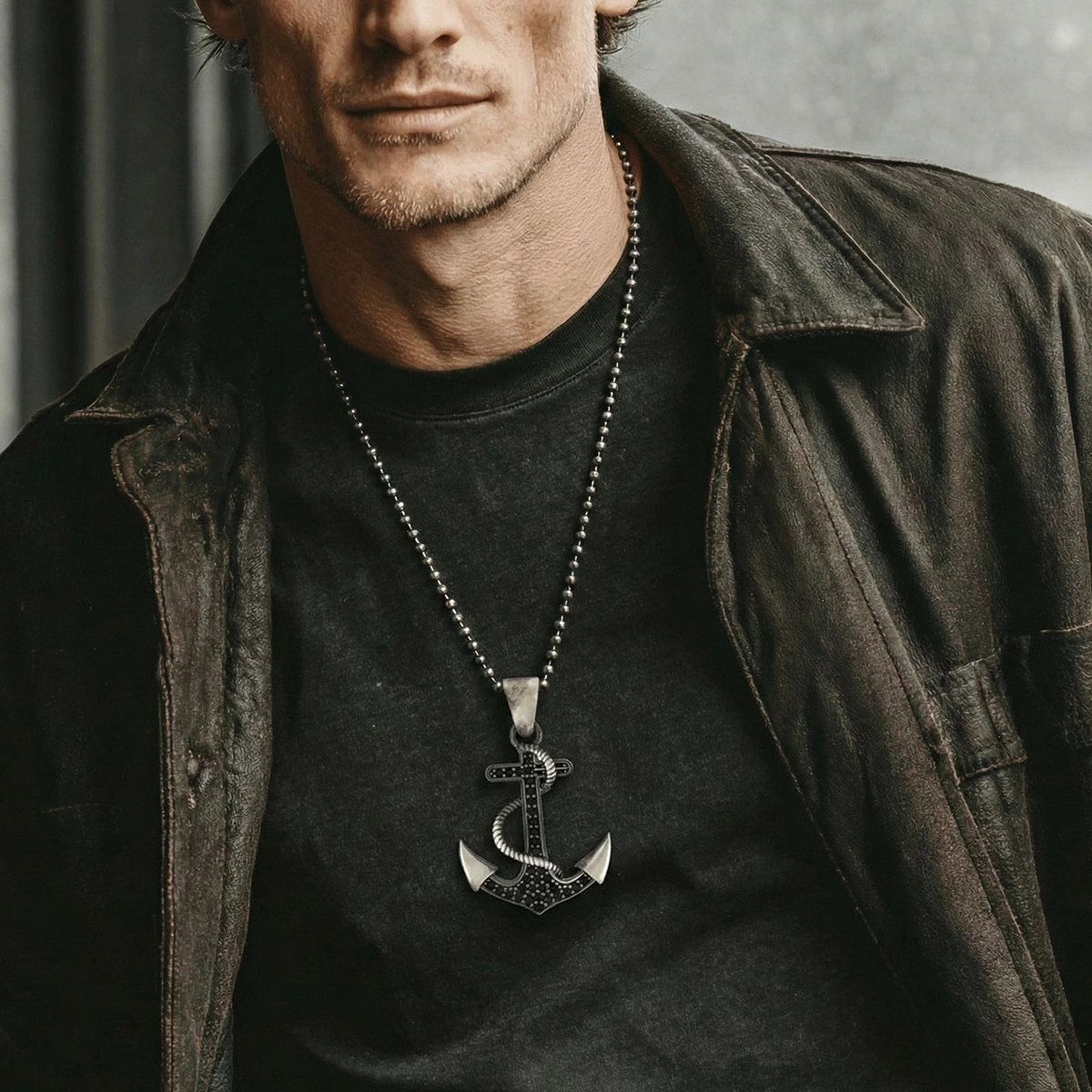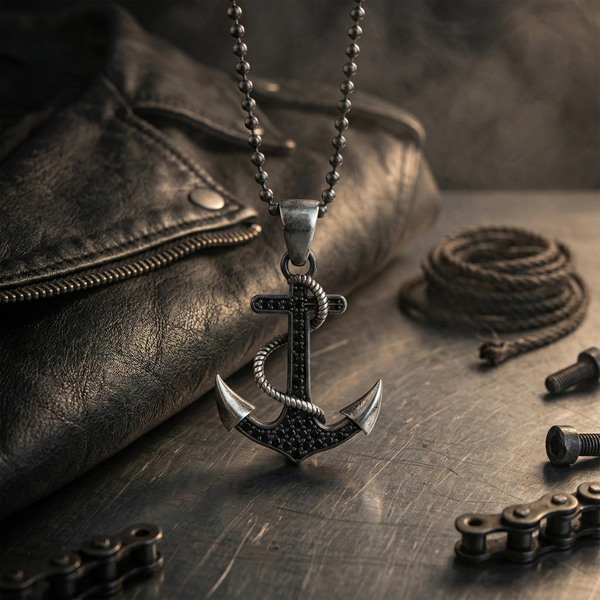 MARKAZİT TAŞLI ÖZEL YÜZEY KAPLAMA HALATLI MİNİMAL DENİZCİ ÇAPA KOLYE
