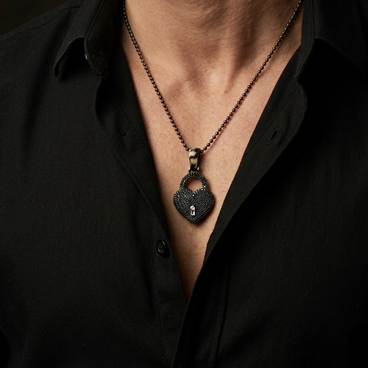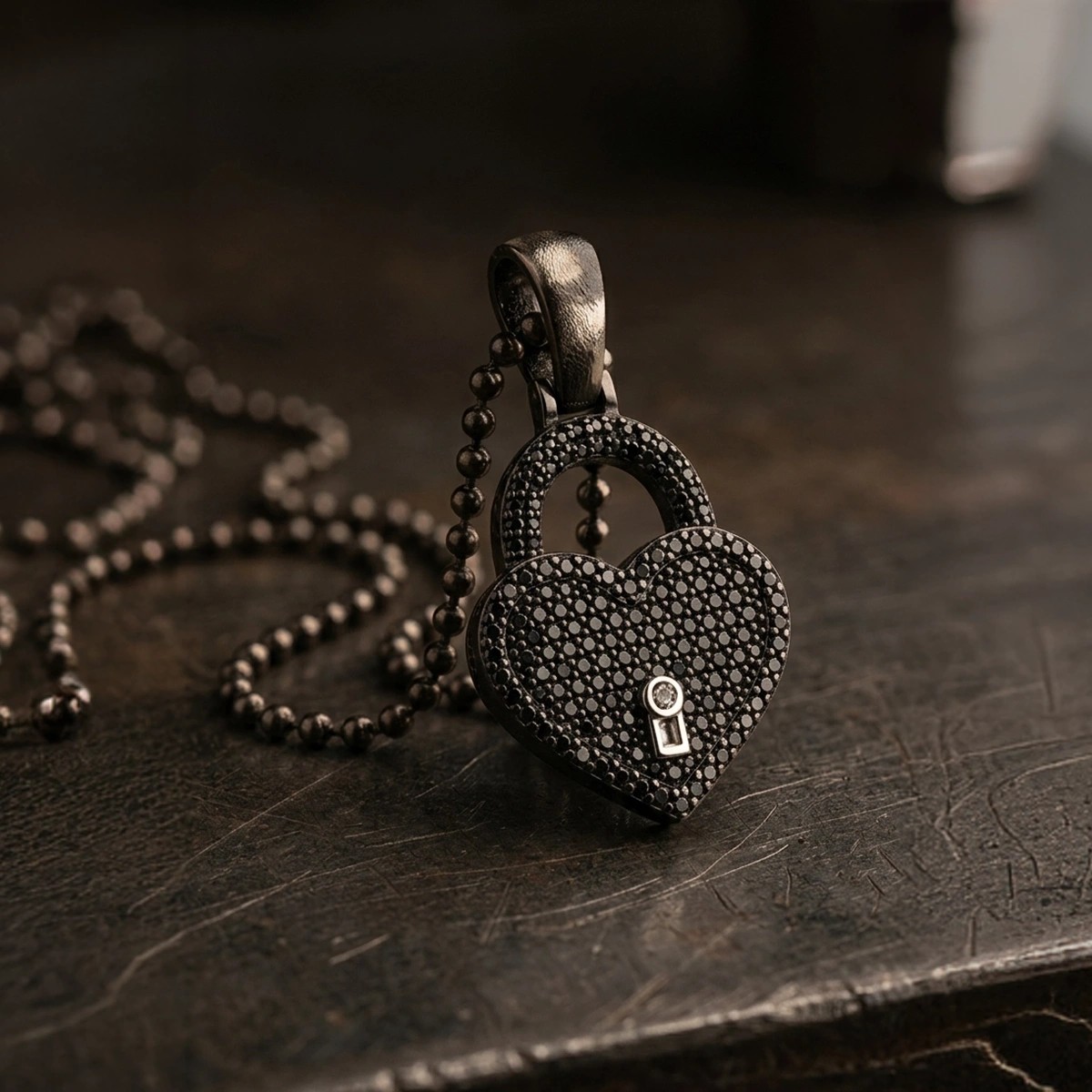 MARKAZİT TAŞLI ÖZEL YÜZEY KAPLAMA KALP KİLİT KOLYE