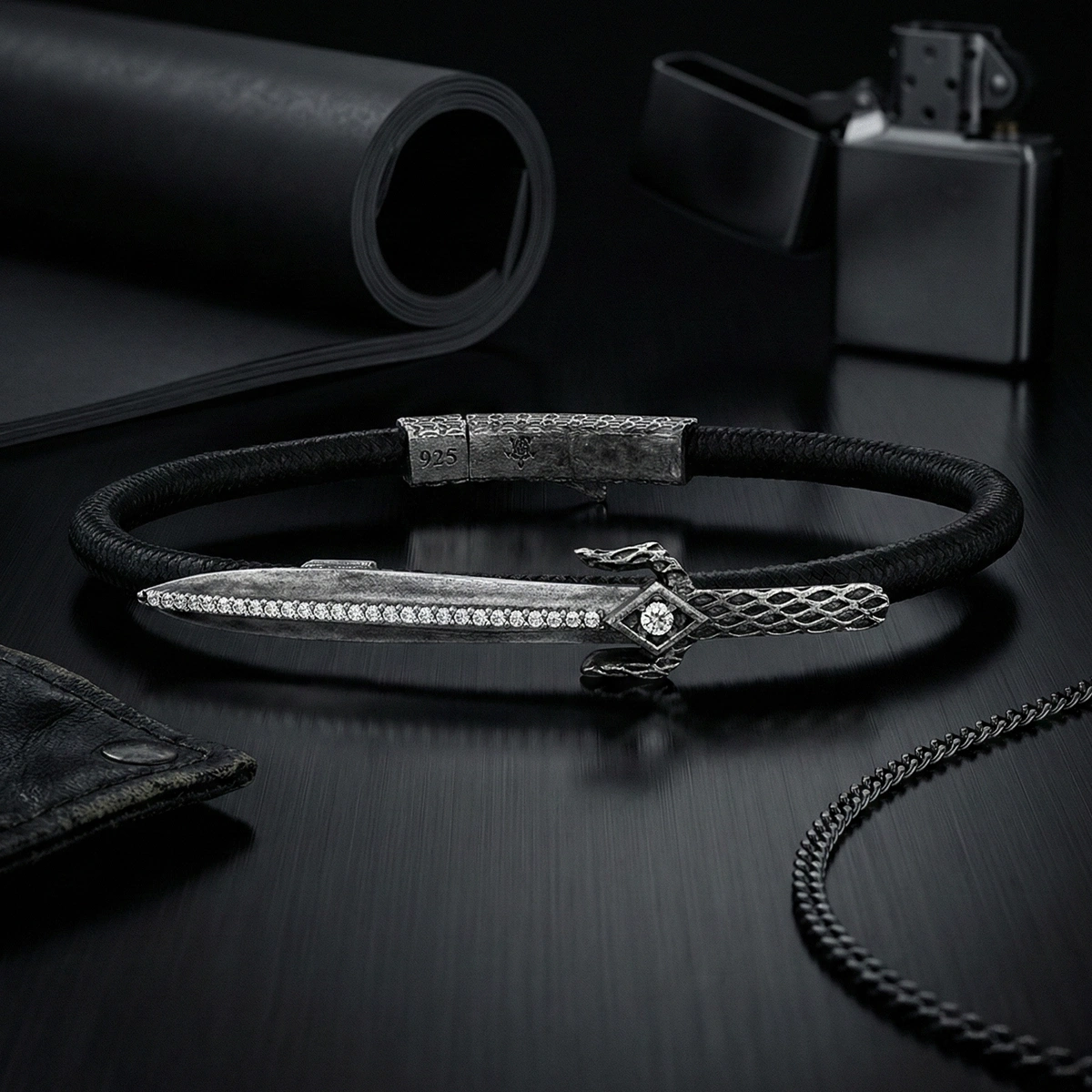Özel Tasarım Taşlı Kılıç Gümüş Bileklik