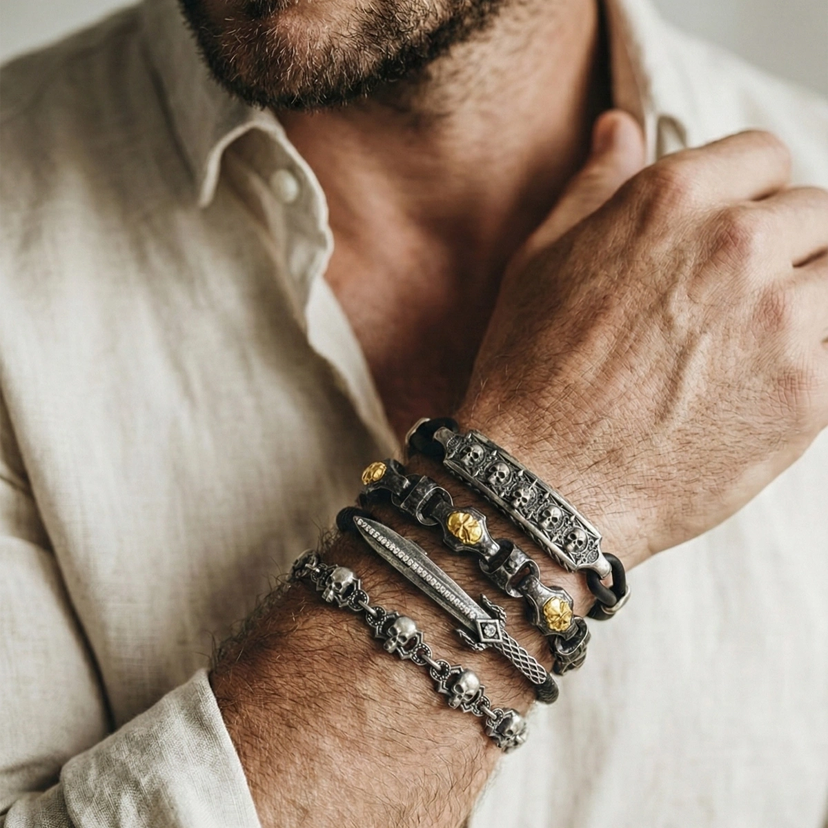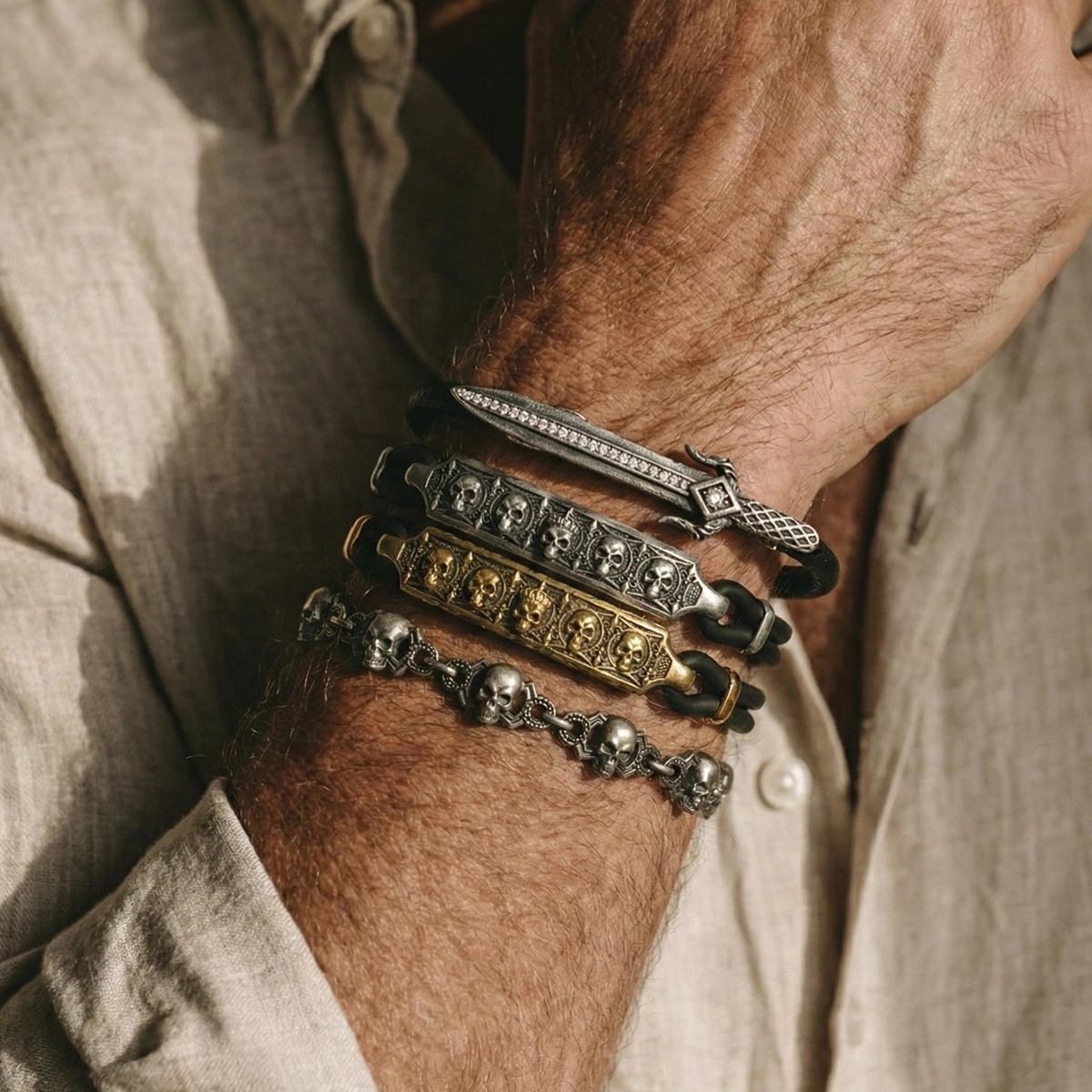 Aurum Skull koleksiyonu, sınırları aşan bir tasarım anlayışı ile unisex takı, aksesuar ve özgün giyim parçalarını sizlere sunuyor. Her parçamız, kendine özgü bir hikaye taşıyarak, giyim ve aksesuarda anlamın ve stilin buluştuğu noktayı temsil ediyor.