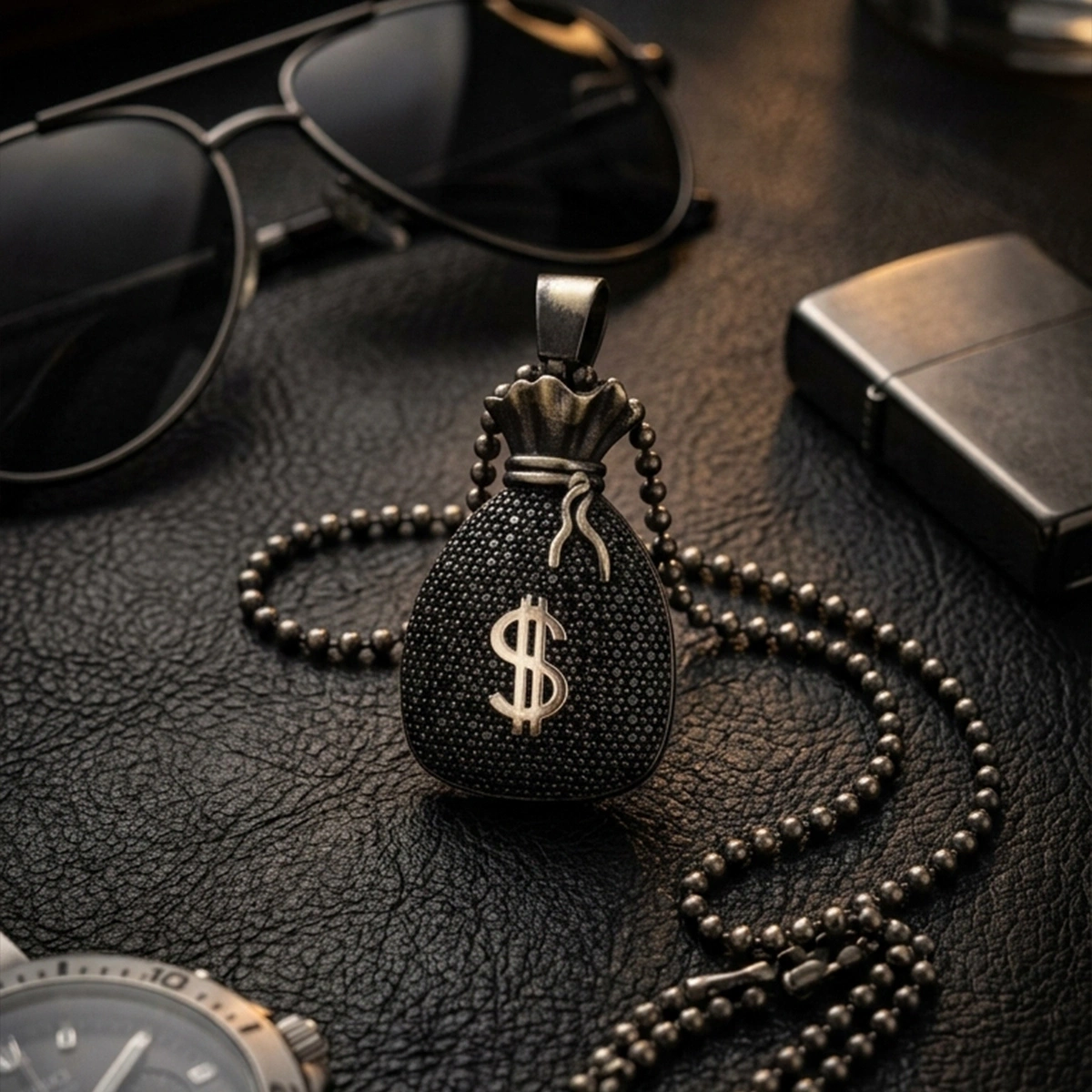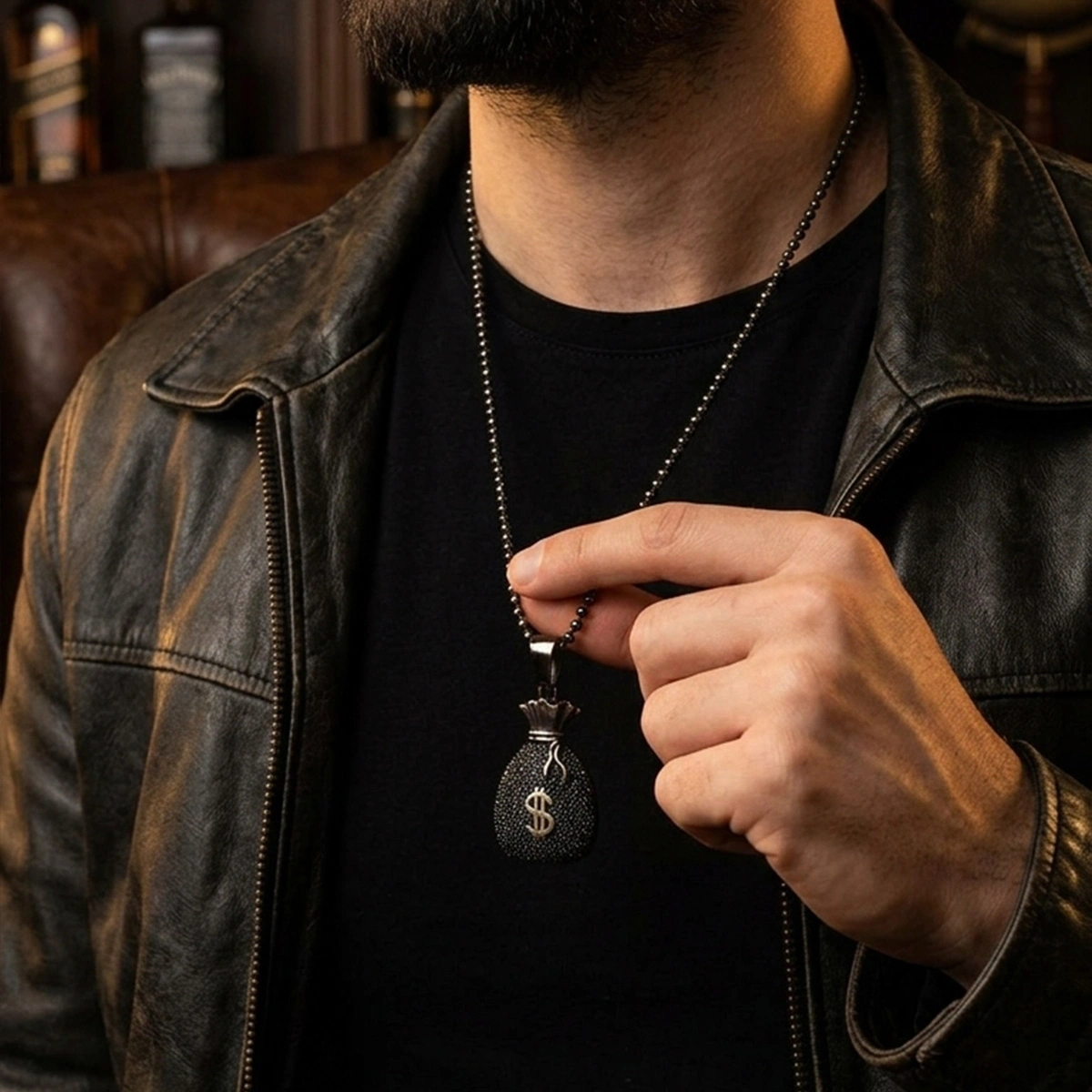 ÖZEL YÜZEY KAPLAMALI KENARLARI DOLAR ÇUVAL MADALYON KOLYE