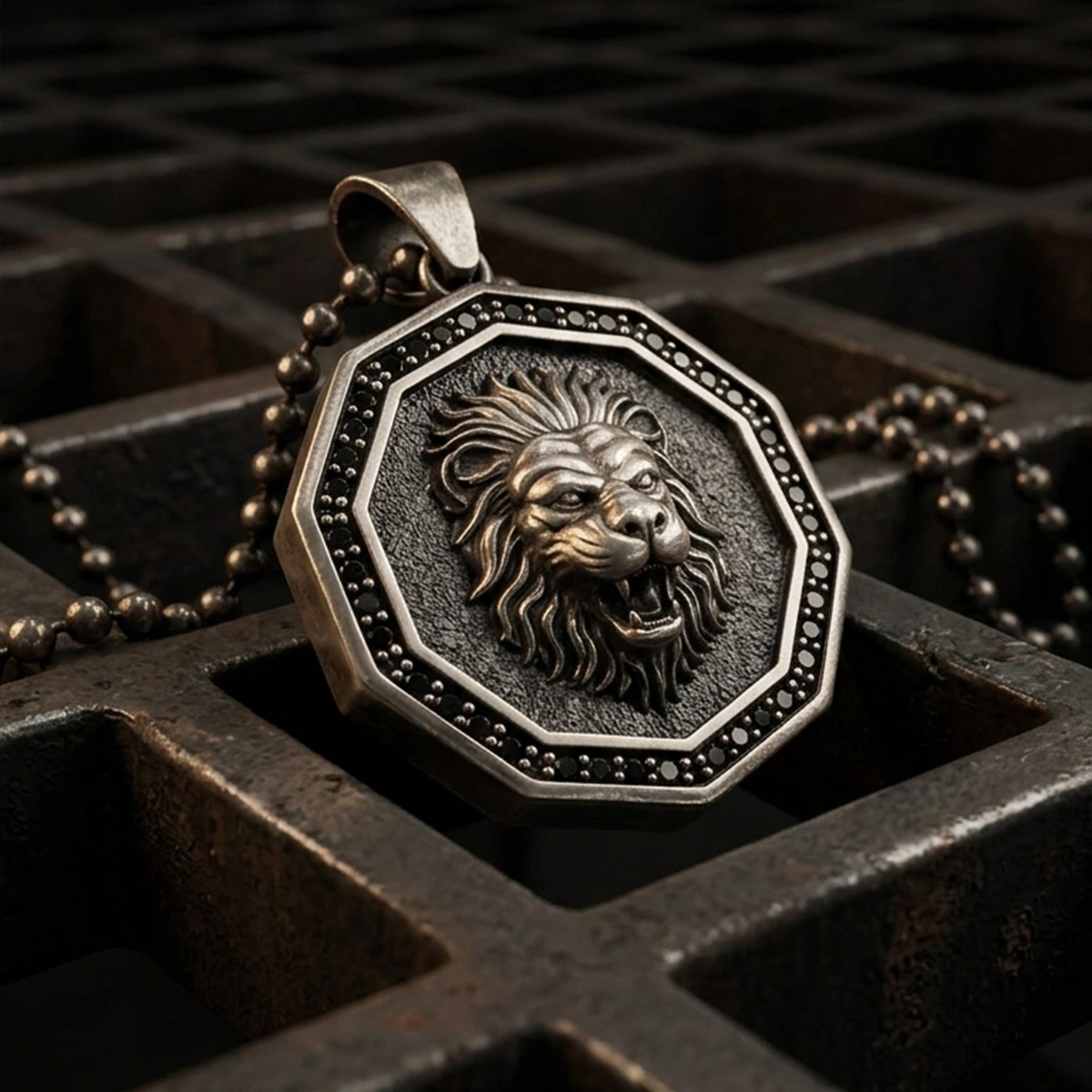 ÖZEL YÜZEY KAPLAMALI KENARLARI TAŞLI ASLAN MADALYON KOLYE Özel Tasarım (925 Ayar Gümüş Özel Renkli Kaplama) 925 Ayar Gümüş Kolye-