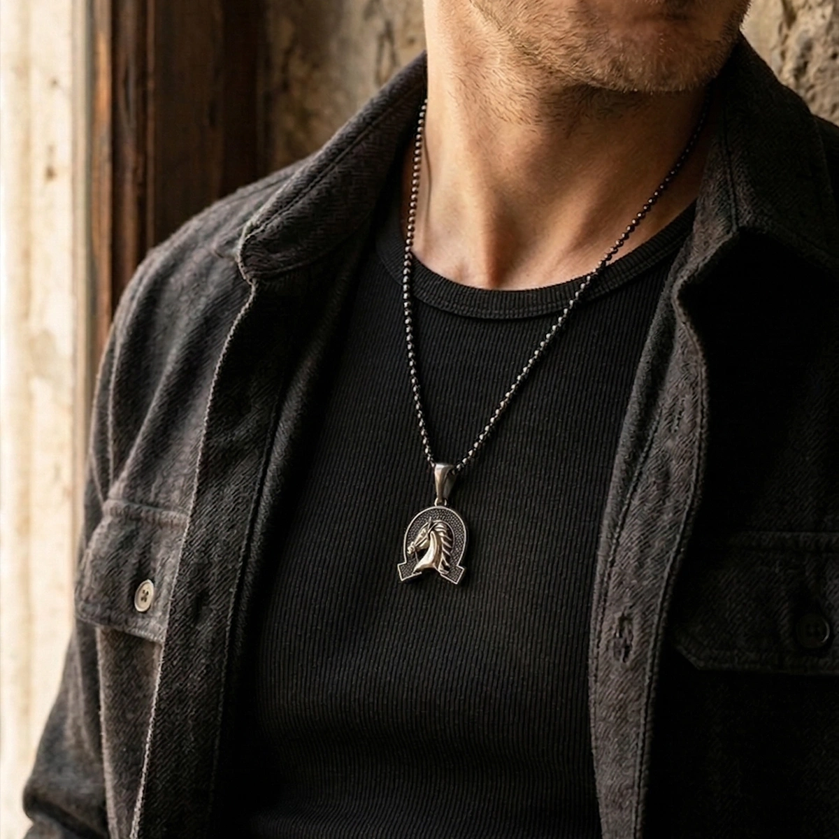 ÖZEL YÜZEY KAPLAMALI KENARLARI TAŞLI NALLI AT MADALYON KOLYE