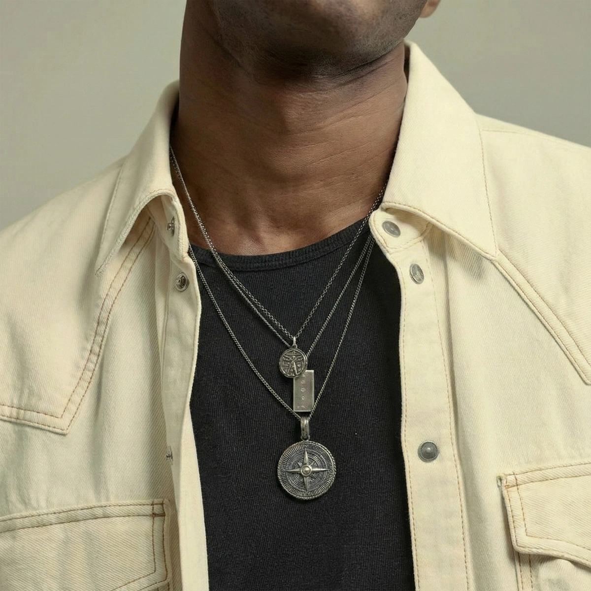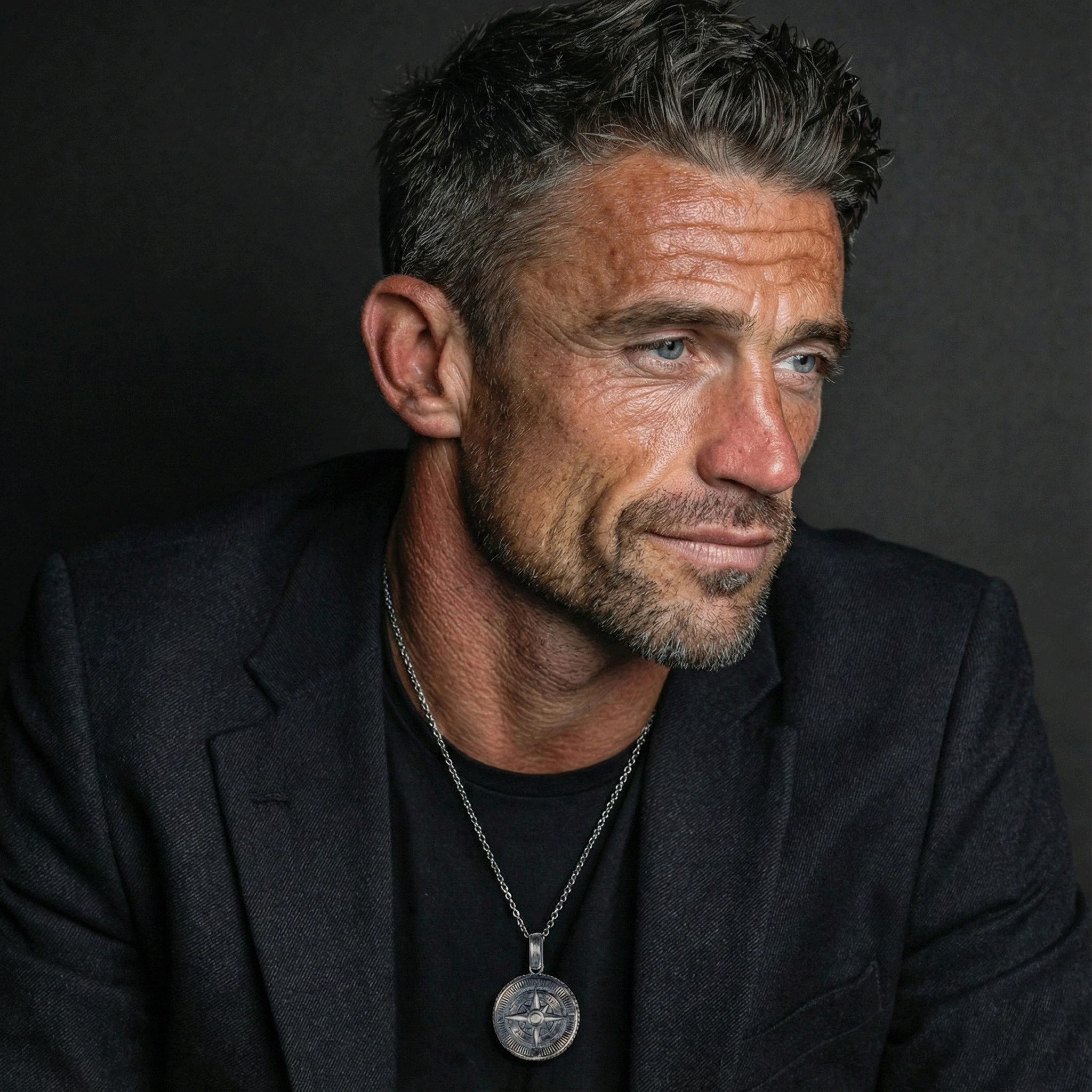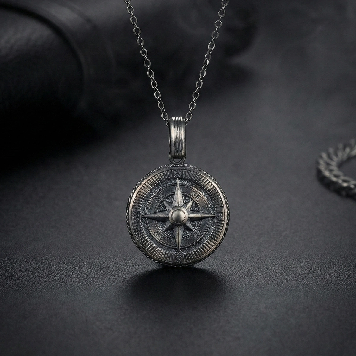 Pusula Özel Kaplama Yüzeyli Gümüş Kolye