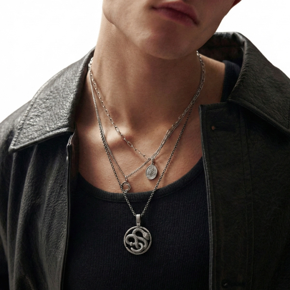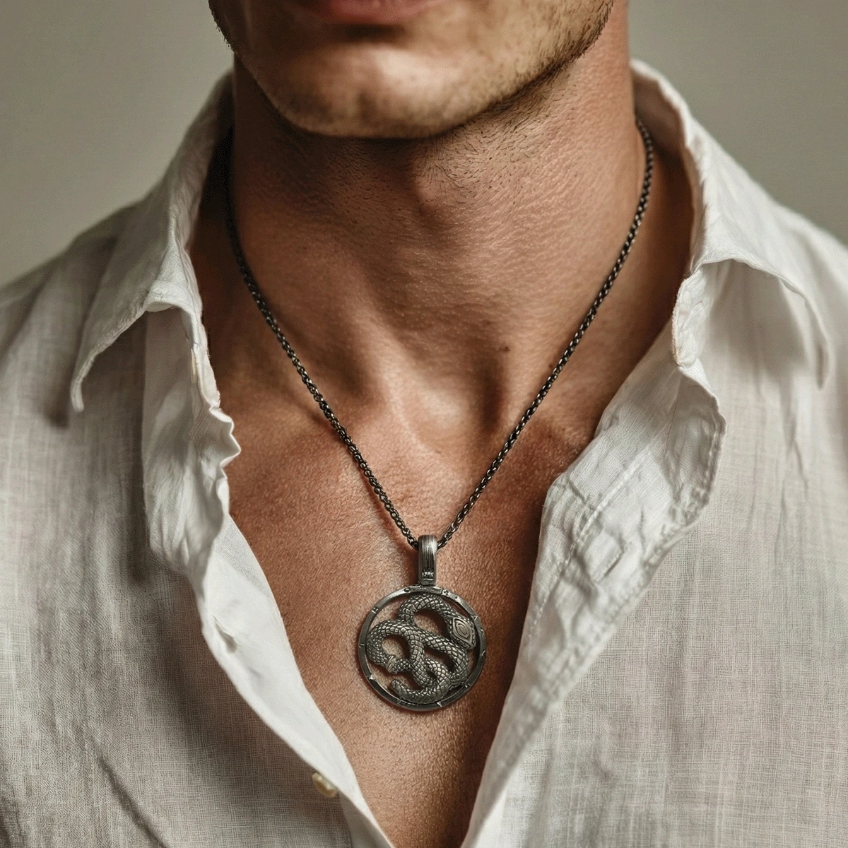 Şifa Yılanı Özel Yüzey Kaplamalı Gümüş Kolye